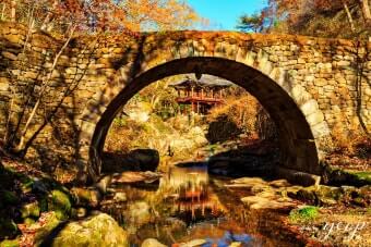 - 선암사 내 승선교 – 물 위에 반영되는 다리와 계곡 풍경이 매우 아름답습니다.