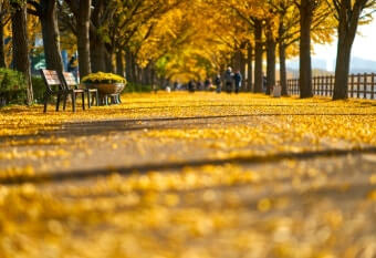 - 낙엽이나 떨어진 은행열매로 인해 바닥이 미끄러울 수 있으므로 운동화나 미끄럼 방지 신발을 착용하시는 게 좋습니다.