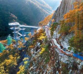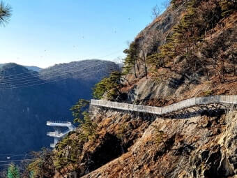 | 소금잔도 | 암벽에 붙은 좁은 데크, 절벽 위 걷는 기분. | 안전 난간 확보됨. 발 밑 조심, 사진 촬영 시 주의. |