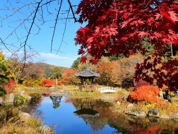 - 구조물 대비: 전통 정자, 돌담, 다리 등과 단풍의 색 대비를 살린 구도를 시도한다.