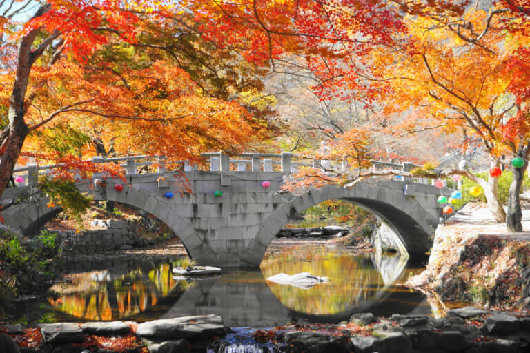 | 극락교 | 도솔천 계류 위에 놓인 다리 위로 단풍이 늘어지는 모습이 아름답습니다. 물에 반영이 있는 아침 시간대에 촬영하면 더욱 운치 있습니다. |