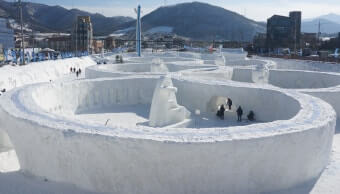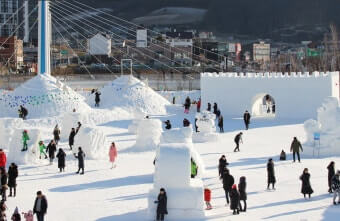 축제장에서는 거대한 눈·얼음 구조물과 조명 연출, 스노우 액티비티, 전통놀이 체험 등이 어우러져 다양한 즐길 거리를 제공합니다. 예컨대 얼음벽이나 눈터널처럼 사진 찍기 좋은 장소가 있으며, 눈썰매장이나 빙판놀이존 등으로 가족 동반 방문객에게 특히 인기가 높습니다.