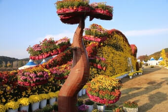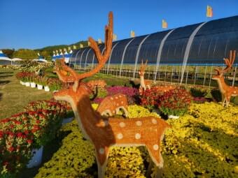 축제장은 약 30,000 ㎡ 규모로 약 4만여 점의 국화 작품이 설치되어 있으며, 특히 대형 조형물과 야간 경관이 방문객들의 시선을 사로잡습니다. 낮과 밤의 분위기 차이를 느끼며 산책·촬영하기에 적합한 공간입니다.