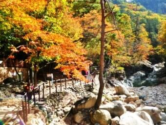 다만 계곡변 돌이나 지형이 미끄러울 수 있으므로 미끄럼 방지 기능이 있는 트레킹화나 접지력이 좋은 신발을 착용하는 것이 좋습니다. 또한 가을철에는 해가 일찍 지고 기온이 내려가므로 여벌 옷을 준비하는 것도 권장됩니다.