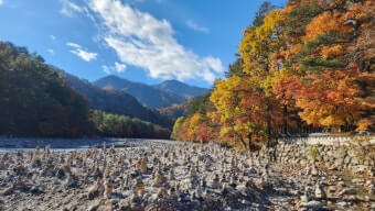 숲과 물, 바위와 돌탑, 그리고 붉고 노란 단풍이 함께 어우러지는 수렴동계곡 트레킹은 단순히 ‘걷는 여행’이 아니라 자연 속에서 숨결을 느끼고 마음을 비우는 시간입니다. 완만한 숲길 덕분에 초보자도 부담 없이 도전할 수 있으며, 단풍철에는 그야말로 단풍과 계곡, 숲이 함께 만들어내는 풍경이 감각을 채워 줍니다.