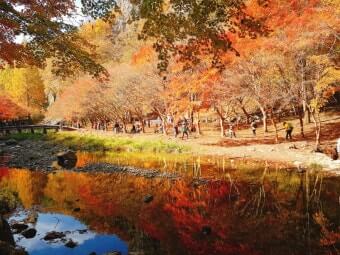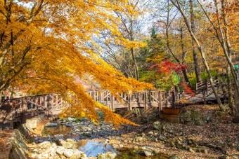모든 코스는 계곡과 나무 데크, 바위 징검다리 등이 포함되어 있어 안전화 착용을 권장드립니다. 단풍 절정 시기에는 방문객이 많아 평일 아침 일찍 출발하는 것이 쾌적합니다. 또한 산행 중간 중간 벤치나 전망대가 마련되어 있어 잠시 쉬어가면서 단풍 사진을 찍기에도 좋습니다.