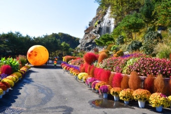 | 국화 보름달 조형물 | 지름 약 5m 규모의 보름달 모양 국화 조형물로 대표 인증샷 포인트 |