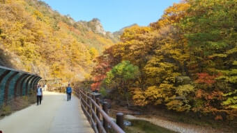 | 겨울 | 나무들이 앙상해지지만 바위·강·절벽의 대비가 돋보이며 한적함이 장점 | 방한복·미끄럼 방지 신발 준비가 좋음 |