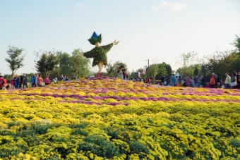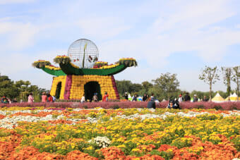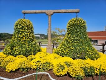 꽃을 단순하게 피워놓은 것이 아니라 동물이나 기차, 캐릭터 형태로 조형된 국화 토피어리 작품들이 전시되어 있어 사진 찍기에 좋은 포인트가 많습니다. 아이들과 함께라면 이 조형물 앞에서 “여기서 사진 찍자”는 순간이 자연스럽게 나옵니다.