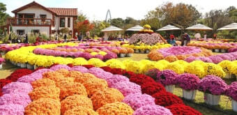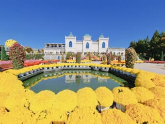 첫째, 치즈테마파크에서는 ‘천만송이 국화’라는 수식어가 실제 체감으로 이어지며, 유럽풍 정원과 치즈 캐슬 건물이 꽃바다와 어우러져 색다른 분위기를 자아냅니다.