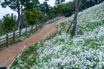첫째, 꽃길 주변은 바람이 강한 날이 많으므로 얇은 겉옷이나 머리핀 등 바람에 대비한 준비가 좋습니다.