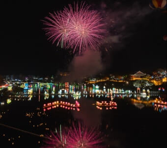 축제의 중심은 유등 전시와 조명 설치로, 남강 위를 수놓는 수만 개의 등이 밤의 강물을 밝히며 방문객의 시선을 사로잡습니다. 또한 불꽃놀이, 공연, 테마 전시 존 등이 어우러져 다채로운 경험을 제공합니다. 불꽃놀이는 축제 기간 중 특정일(예: 4일, 10일, 18일)에 예정되어 있으며, 조명 점등은 보통 오후 18시부터 시작되고 24시 전후까지 유지되는 경우가 많습니다.