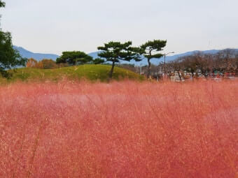 | 대릉원 | 신라 왕릉군 / 고즈넉한 숲길과 유적 | 핑크뮬리 관람 후 도보 또는 차량 이동 가능 |