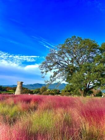 첨성대 핑크뮬리는 단순한 꽃 명소를 넘어, 천년의 역사와 오늘의 감성이 한 프레임에 공존하는 장소입니다. 분홍빛 억새가 햇살을 받아 빛나고, 그 뒤로 첨성대가 우뚝 선 장면은 마치 시간의 흐름을 담은 한 폭의 그림처럼 다가옵니다. 이곳에서의 관람은 단순히 ‘꽃을 본다’가 아니라, 계절과 시간, 문화유산과 자연이 하나로 어우러진 감각적 경험이 됩니다. 방문 시기와 시간이 흐트러지지 않게, 빛과 구도를 생각해 동선을 구성하시면 마음속에 오래 남을 풍경을 담아가실 수 있습니다. 맛집과 카페는 여행의 휴식과 미각 만족을 더해 주며, 주변 유적과 거리들은 경주 여행을 풍성하게 만드는 요소가 됩니다. 가을 날씨가 허락하는 날, 첨성대 핑크뮬리의 분홍빛 물결 속에 발을 담그시길 바랍니다. 그 순간은 사진으로만 남는 것이 아니라, 눈과 마음속에 오래 머무는 기억이 될 것입니다. 행복하고 감성 가득한 가을 여행 되시길 바랍니다.