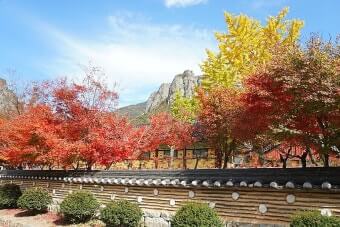 | 대전사 → 용추폭포 (주방천 계곡길) | 약 2.2 km / 약 1시간 내외 | 낮음 | 계곡 옆 숲길로 남녀노소 가볍게 단풍 감상 가능. 폭포와 기암괴석이 어우러진 풍경 |