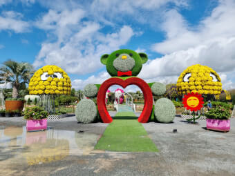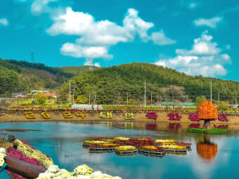 즐길거리로는 다음과 같은 항목이 있습니다: - 국화 미로정원 산책: 색상별로 조성된 미로를 걸으며 꽃 속에 머무는 체험 - 조형물과 꽃길: 꽃으로 만든 거대한 토피어리나 설치미술과 함께 사진 촬영 - 체험 부스: 꽃 만들기, 포토존 옆 즉석 촬영 체험 등이 마련되어 있어 더욱 기억에 남는 방문이 됩니다.