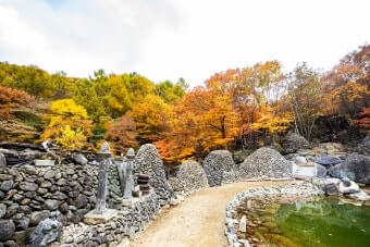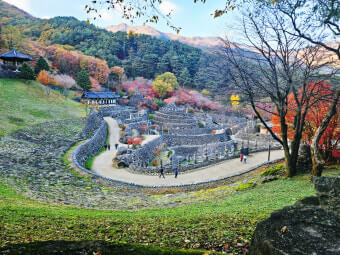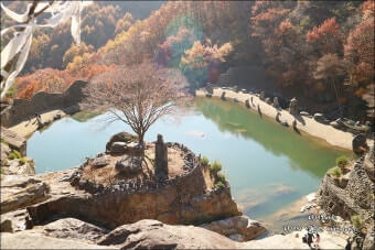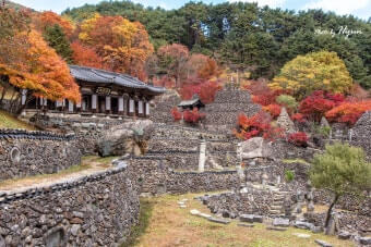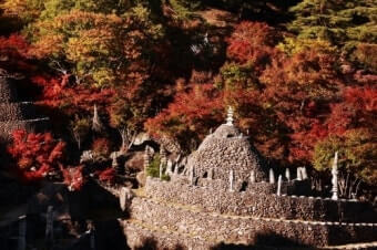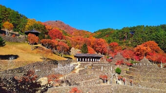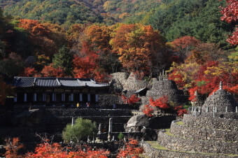 | 대표 풍경 | 붉고 노란 단풍 숲 + 돌탑 군락 |