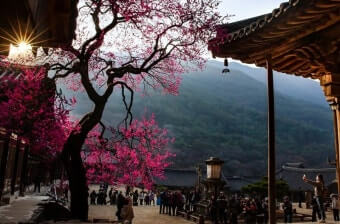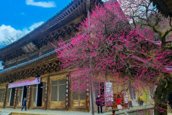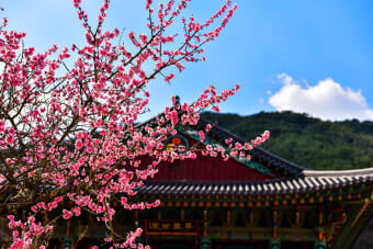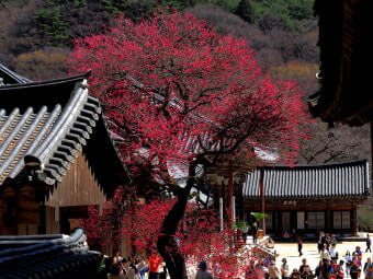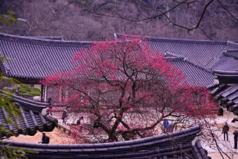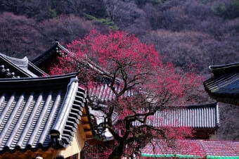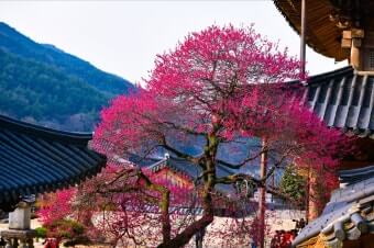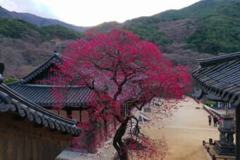 홍매화 사진은 오전 6시~8시 사이 일출 직후 촬영하면 부드러운 빛과 이슬이 어우러져 최상의 결과물을 얻을 수 있습니다. 특히 각황전 앞 홍매화와 대웅전 주변 고목이 인기 촬영 포인트이며, 평일 방문 시 인파를 피해 여유롭게 구도를 잡을 수 있습니다. 역광보다는 측광이나 순광으로 촬영하면 홍매화 고유의 붉은 색감이 선명하게 표현되고, 접사 렌즈를 활용하면 꽃잎의 섬세한 디테일까지 담을 수 있어 수상 확률이 높아집니다.