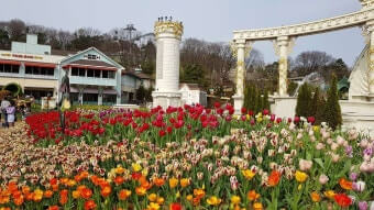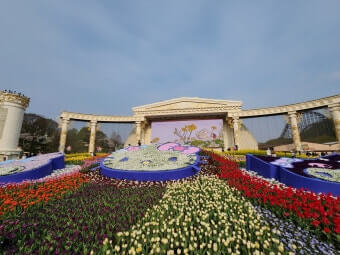에버랜드 튤립축제는 매년 봄 시즌을 대표하는 행사로 자리 잡고 있으며, 약 100여 종 이상의 튤립 품종이 테마별 정원에 배치되어 관람객을 맞이합니다. 정문을 지나며 시작되는 꽃길은 계절의 시작을 알리는 상징적인 공간으로 구성되어 있으며, 중앙 광장과 포시즌스 가든은 축제의 핵심 포인트로 꼽힙니다. 각 구역은 색상과 높이, 개화 시기를 고려하여 설계되어 있어 방문 시기마다 서로 다른 분위기를 경험할 수 있도록 구성되어 있습니다. 특히 낮 시간대에는 자연광과 꽃의 색감이 어우러져 화사한 분위기를 자아내며, 오후 시간대에는 따뜻한 색감으로 또 다른 매력을 느끼실 수 있습니다. 또한 야간에는 조명이 더해져 낮과는 전혀 다른 분위기의 정원이 펼쳐집니다.