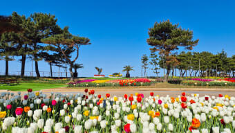 | 해변 테마존 | 꽃지해수욕장 배경의 야외 튤립 전시, 낙조 명소 |
